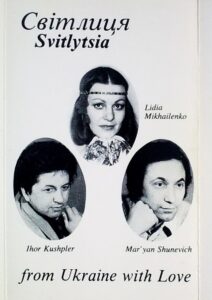 1987, Yevshan Records – CYFP 2039 (MC) Лідія Михайленко, Ігор Кушплер, Мар’ян Шуневич – Світлиця (З України з любов’ю) / Svitlytsia – From Ukraine with love